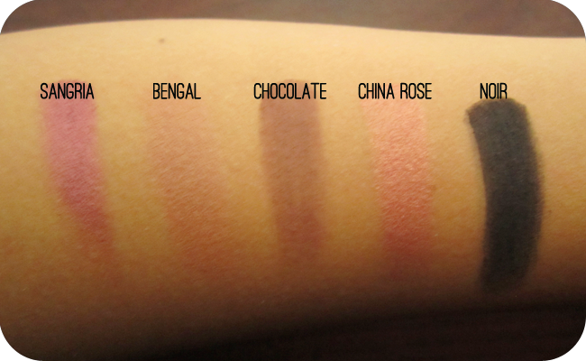 I am most pleased with my Anastasia palette. The eye shadows are so creamy and pigmented, and the colors are beautiful. The swatches didn't turn out as well in the pictures (so sad!) as they look in person, but these eyeshadows are really great. I've been using the palette every day since it (finally) arrived earlier this week. My favorite shades are Gilded, China Rose, and Sangria.